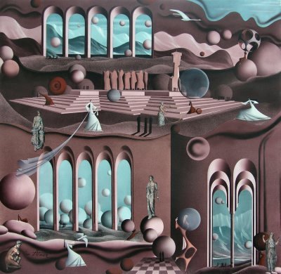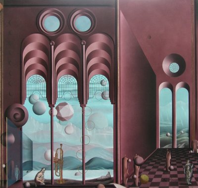 Painting on board, varnished, 38" x 34" |