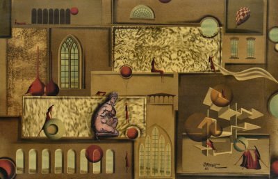Painting on board, varnished, 38" x 34" |